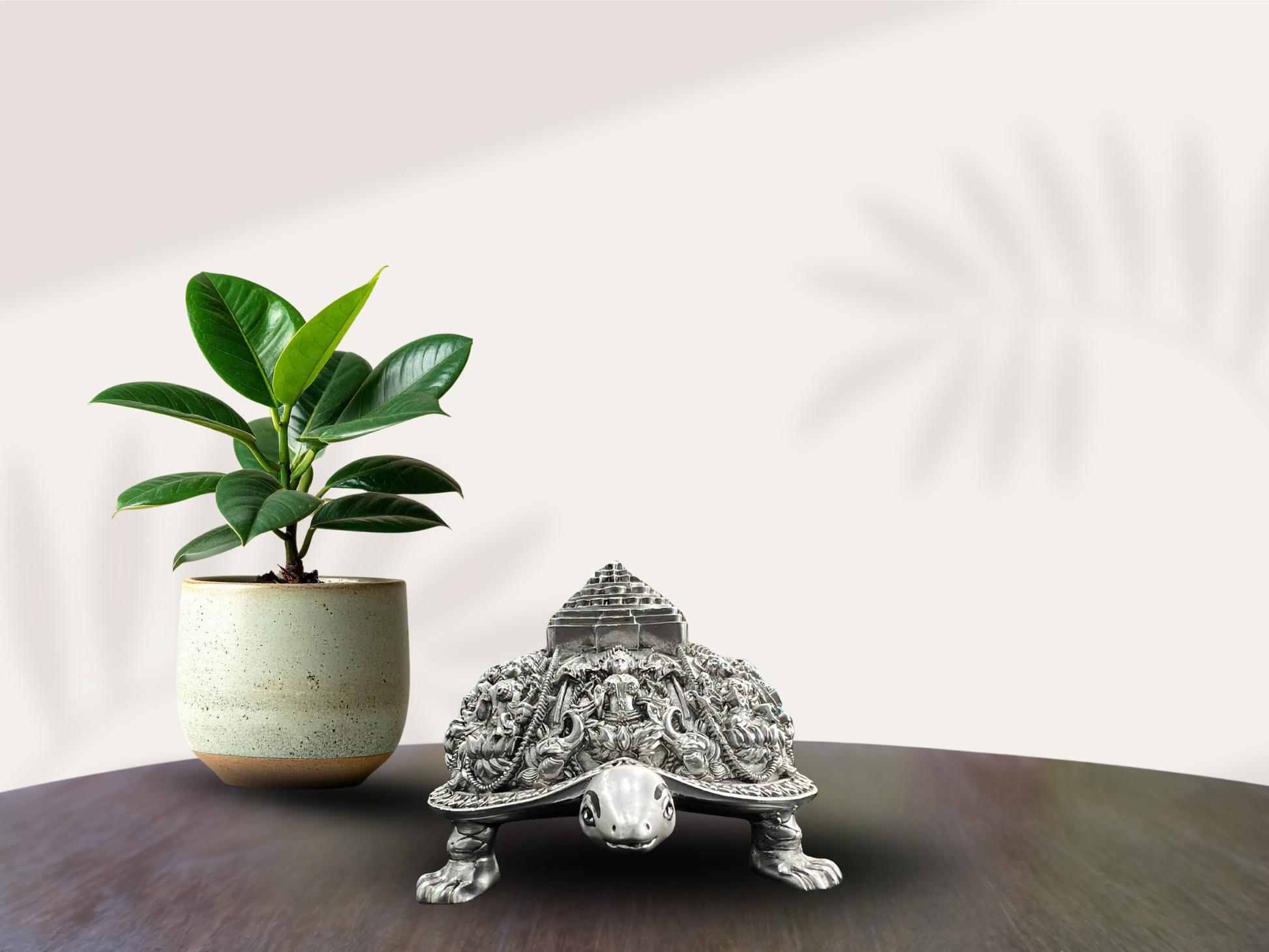 The tortoise, known for stability and longevity in Vastu Shastra, is believed to attract positive energy and wealth when placed in the right direction. Its metallic silver finish gives it a luxurious look, making it a perfect addition to your home décor, pooja room, or office space.