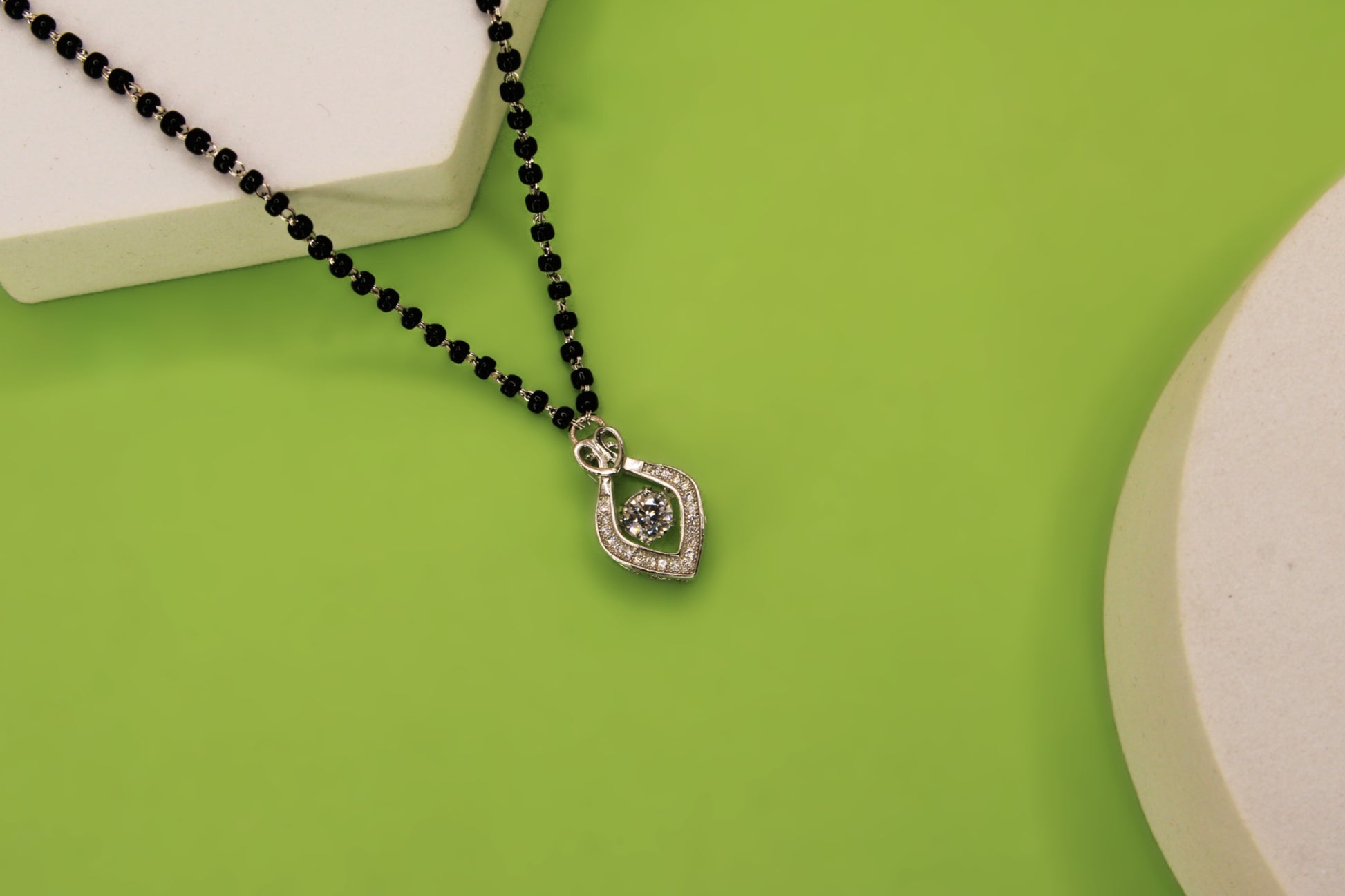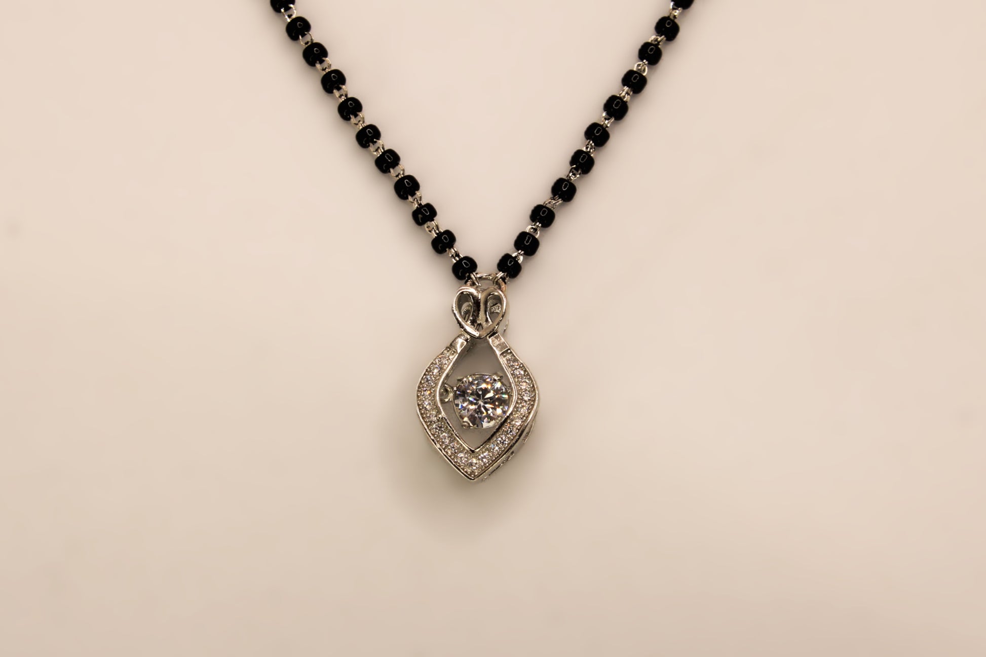 Elevate your everyday elegance with this beautifully crafted 925 Sterling Silver Mangalsutra, blending traditional charm with modern sophistication. Made from hallmarked 92.5% pure silver, this timeless piece features a classic black beaded chain symbolizing marital bliss and protection, paired with a delicately designed pendant.